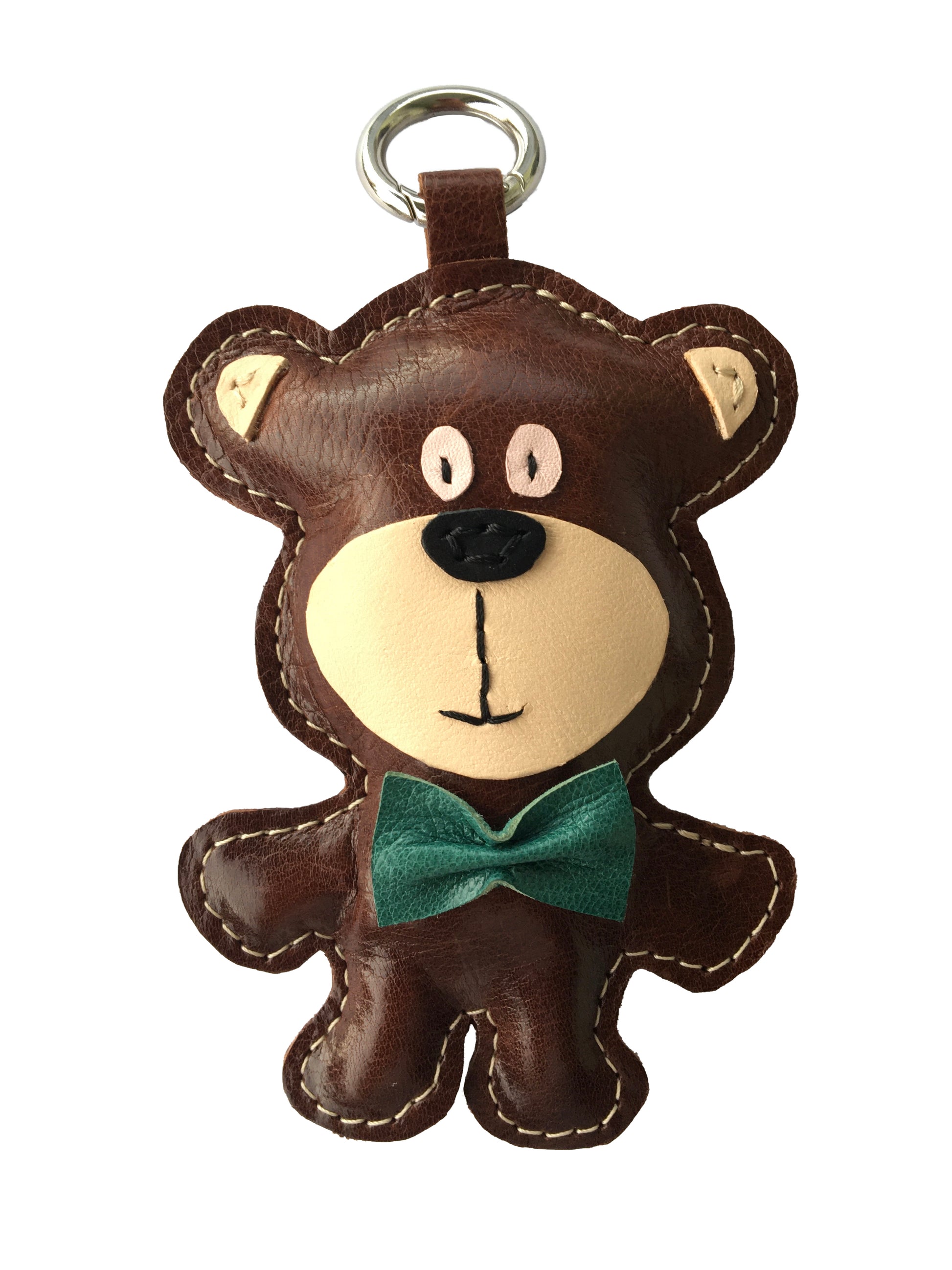 Finn the upcycled bear comes in a happy mood to bring joy to your day. The bag charm is hand made out of leftover leather - upcycled leather from a shoe manufacturer.